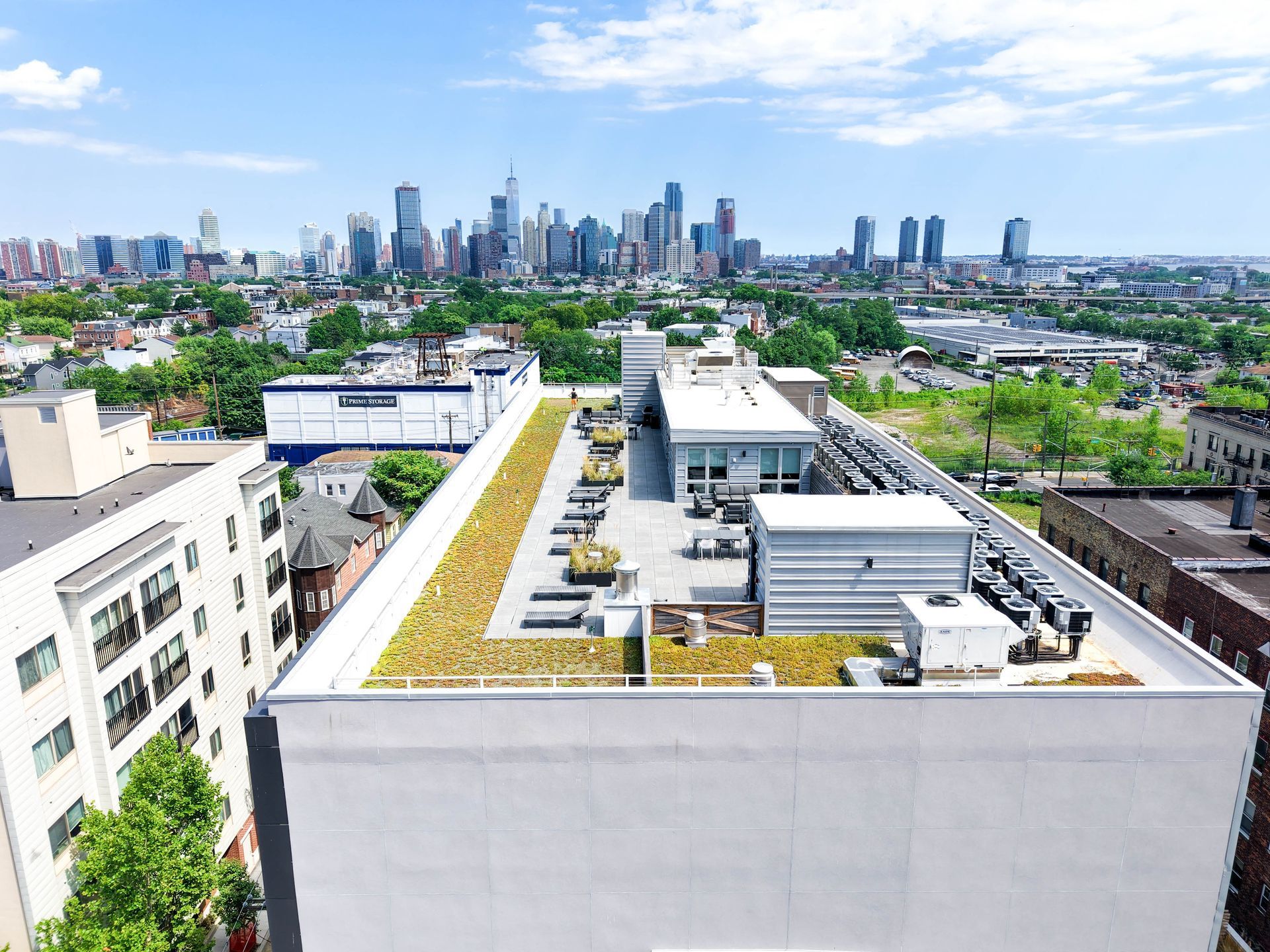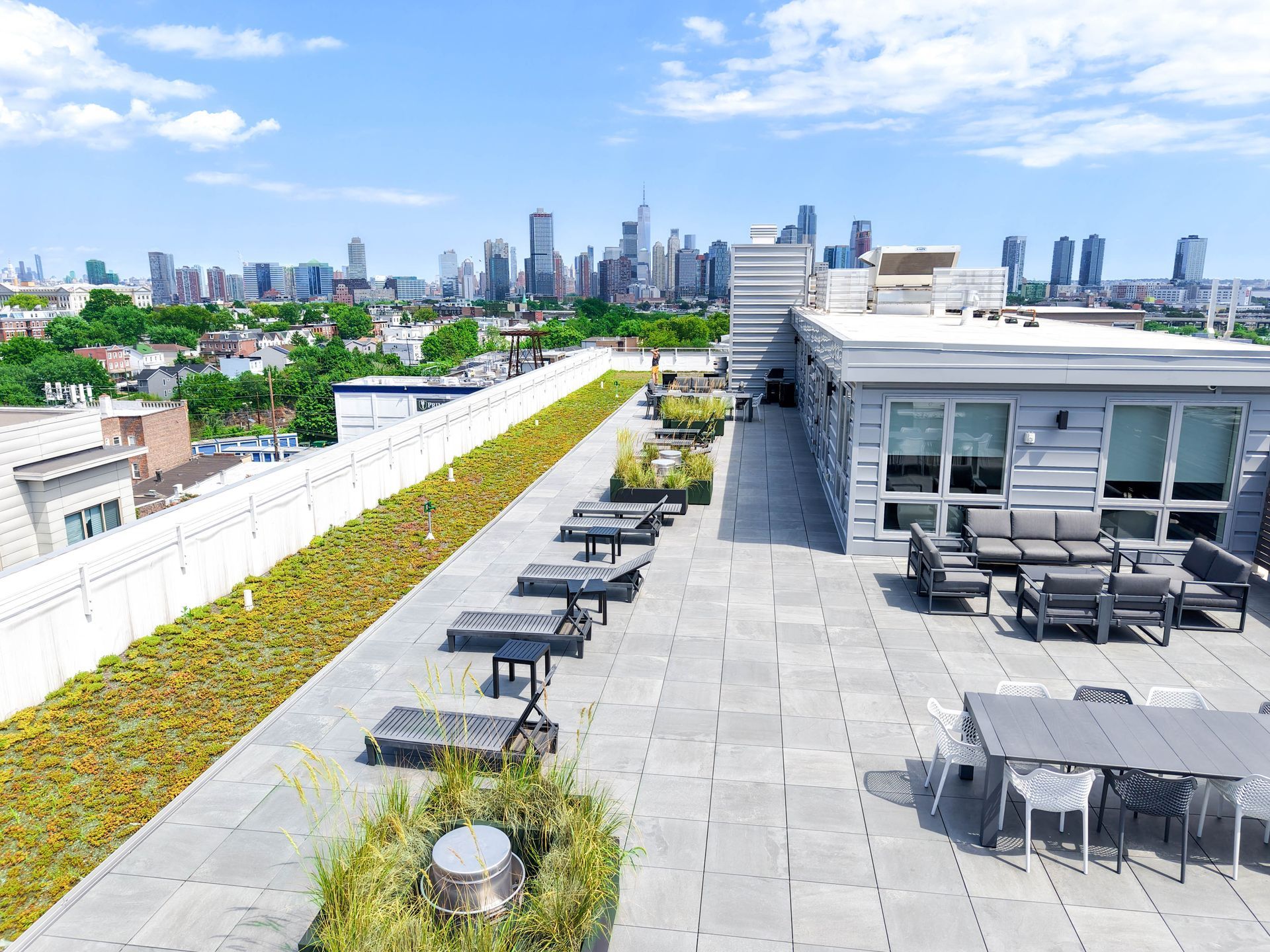 Ascend to the top of 39 High Street to find a beautifully landscaped rooftop area, perfect for entertaining and enjoying sweeping views of lower Manhattan and Jersey City's tree-lined streets. This building also offers convenient amenities such as ground-level parking, premium fitness center and bike storage for residents.